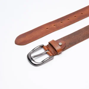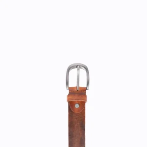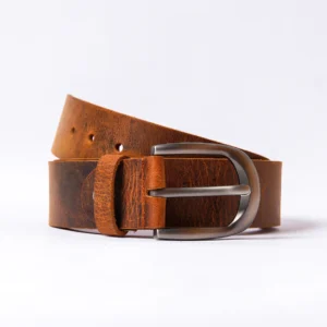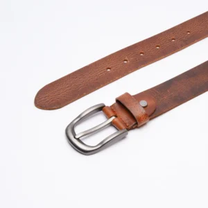 Handmade Rugged Brown Leather Belt with Silver Buckle