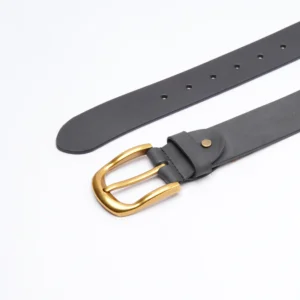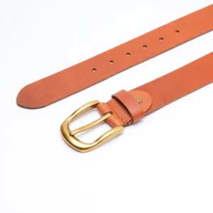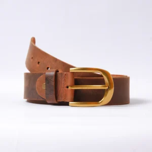 Handmade Vintage Brown Leather Belt with Golden Buckle