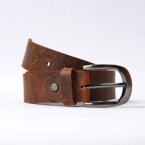Handmade Rugged Brown Leather Belt with Gunmetal Buckle