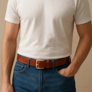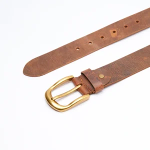 Handmade Rugged Brown Leather Belt with Golden Buckle