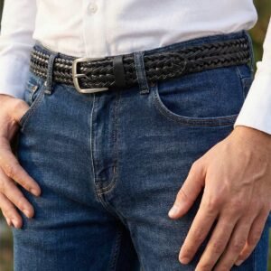 Handmade Rugged Brown Leather Belt with Silver Buckle