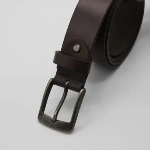 Dark Brown Leather Belt with Antique Rugged Buckle