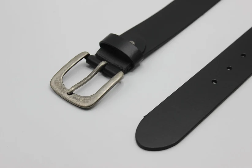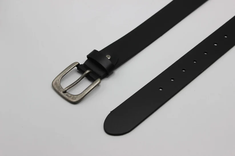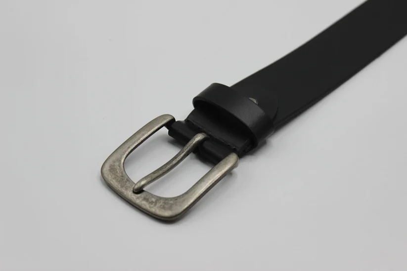 A timeless black leather belt designed for everyday wear, featuring a smooth finish and a durable rounded buckle for a classic, polished look. Perfect for pairing with both formal and casual outfits.