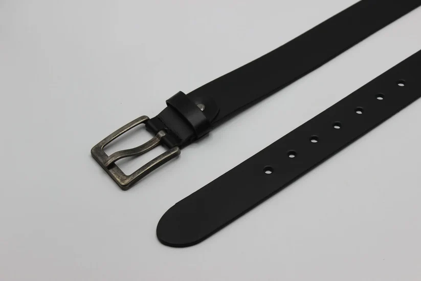 This black leather belt features a wide pin buckle, combining durability with a bold, modern design. Crafted from premium leather, it is ideal for casual and everyday wear, adding a strong and stylish touch to any outfit.