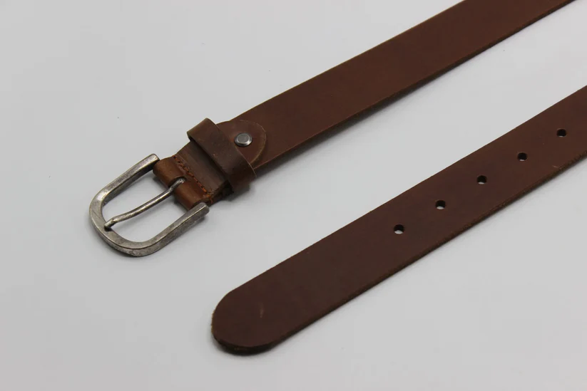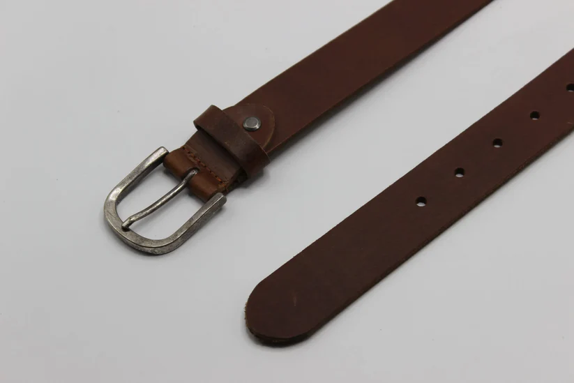 A classic brown leather belt featuring an antique silver buckle, designed to offer a refined, timeless accessory for both casual and formal outfits. Durable and versatile for everyday wear.
