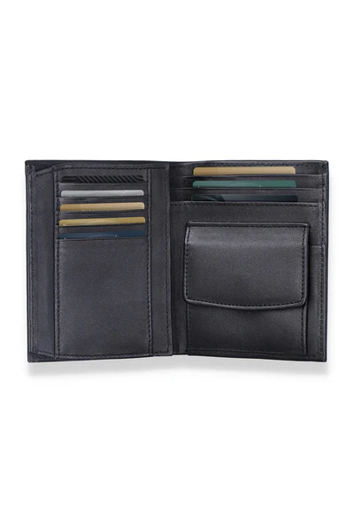 A classic tri-fold leather wallet offering organized storage and timeless style for everyday use.