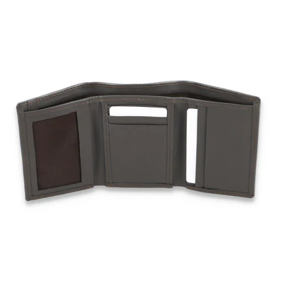 Sleek tri-fold leather wallet with minimalist design, offering organized storage and everyday practicality.