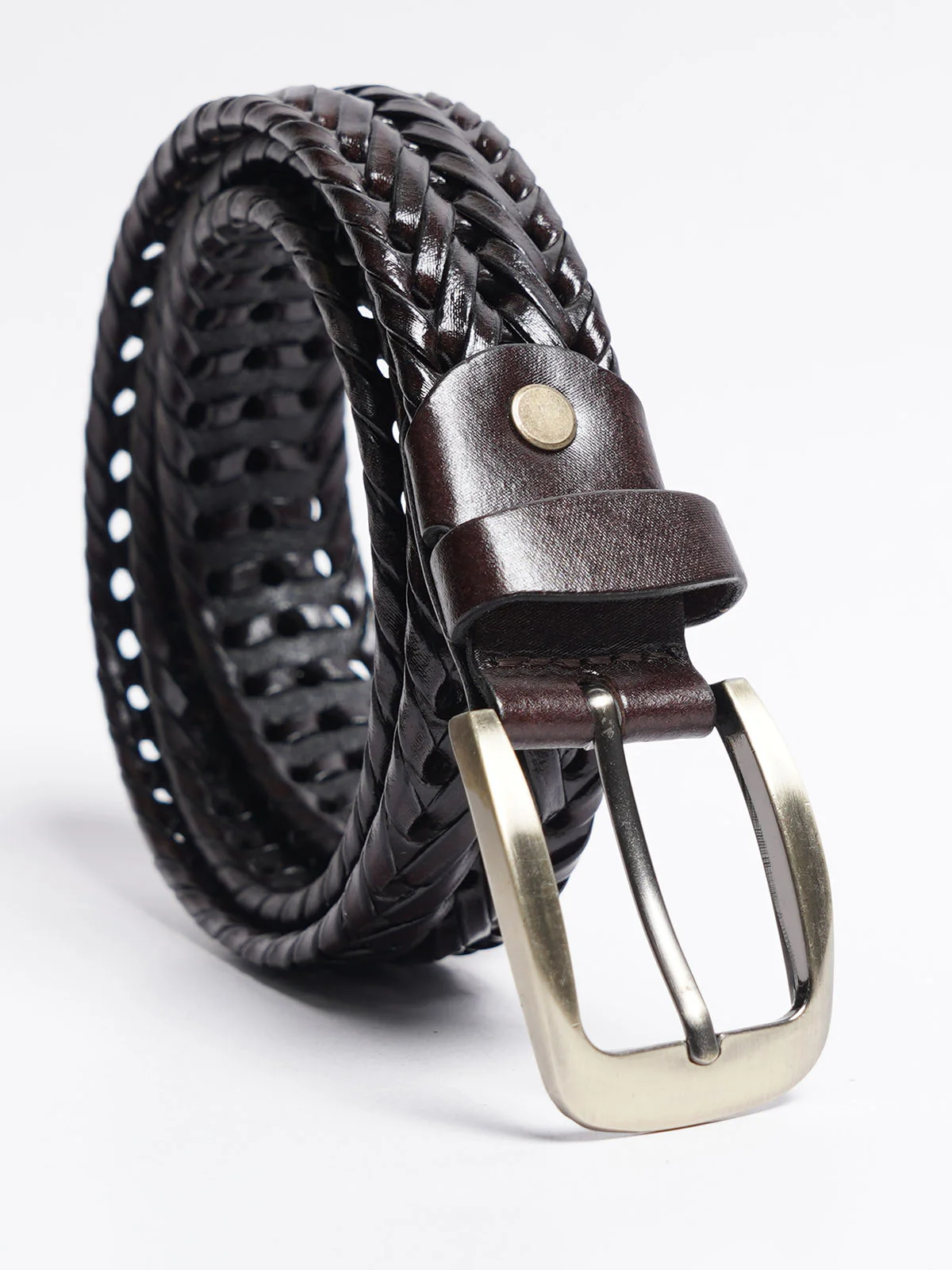 A durable dark brown leather belt designed for men, offering a classic and versatile accessory suitable for both casual and formal outfits.