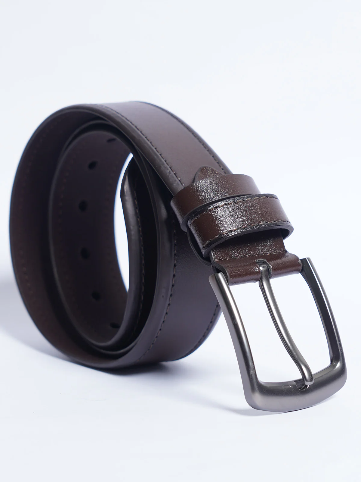 A timeless accessory for men, this dark brown leather belt combines durability with a clean, polished look. Its smooth leather finish and classic buckle make it ideal for both formal and casual outfits.
