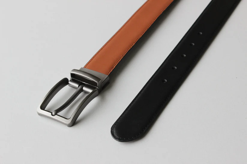 This formal leather belt features a classic silver reversible buckle, allowing you to switch easily between black and tan. Crafted from premium leather, it combines durability with a polished, professional look suitable for office, business, and formal occasions.