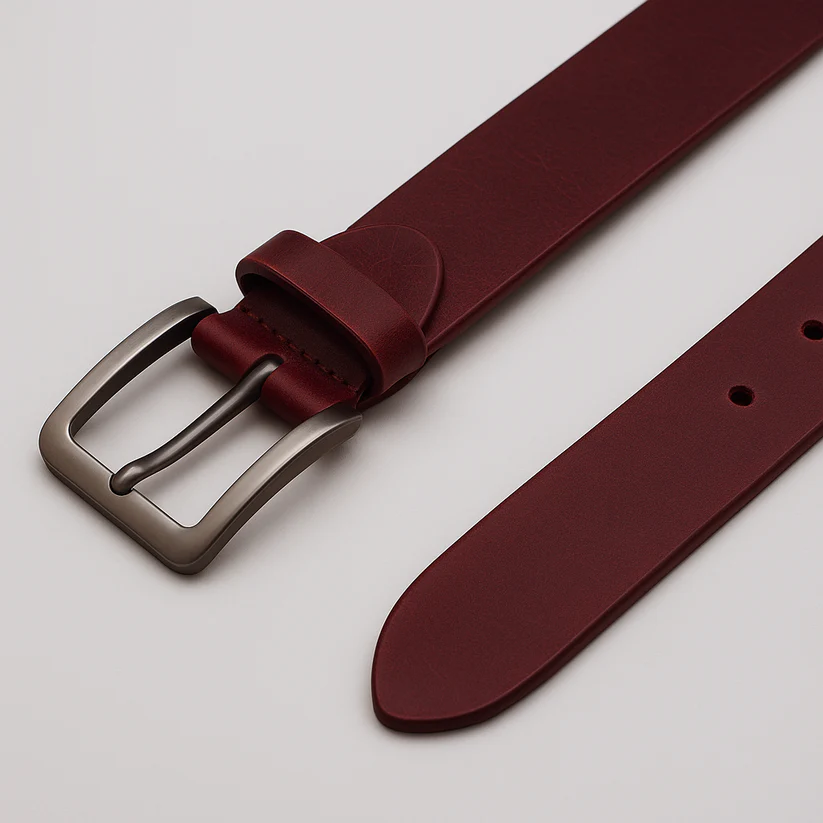 This limited edition belt is crafted from premium crazy horse leather in a rich red wine color, offering a bold yet refined look. With a sturdy 4mm gauge build, it delivers exceptional durability and a distinctive character that elevates casual and smart-casual outfits.