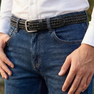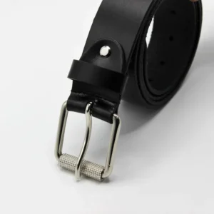 Black Leather Belt with Silver Roller Buckle