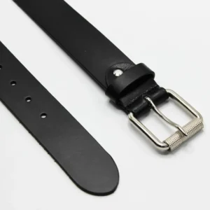 Black Leather Belt with Matt Black Buckle