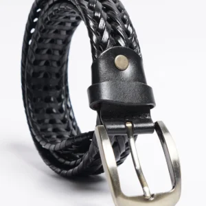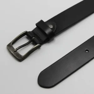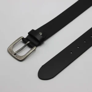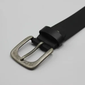 Black Leather Belt with Antique Rugged Buckle