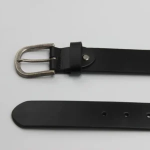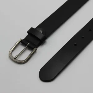 Black Leather Belt with Rounded Buckle