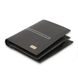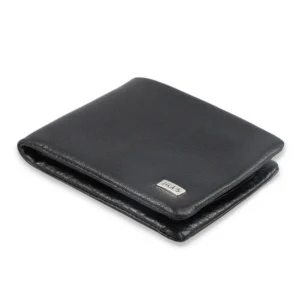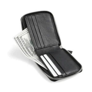 Premium Leather Bi-Fold Wallet with Zipper and Penny Pocket – Black