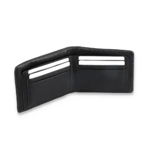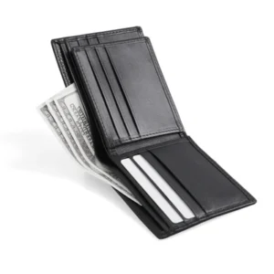 RFID-Protected Leather Bi-Fold Wallet – Black