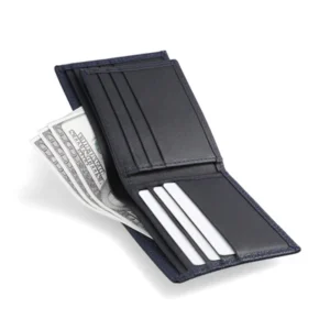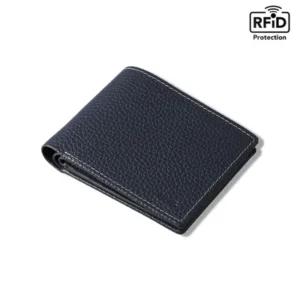 RFID-Protected Leather Bi-Fold Wallet – Navy Blue