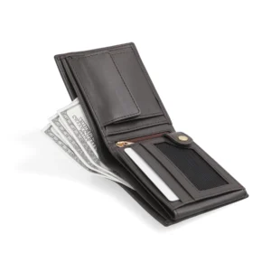 RFID Bifold Wallet with Embossed Logo – Dark Brown